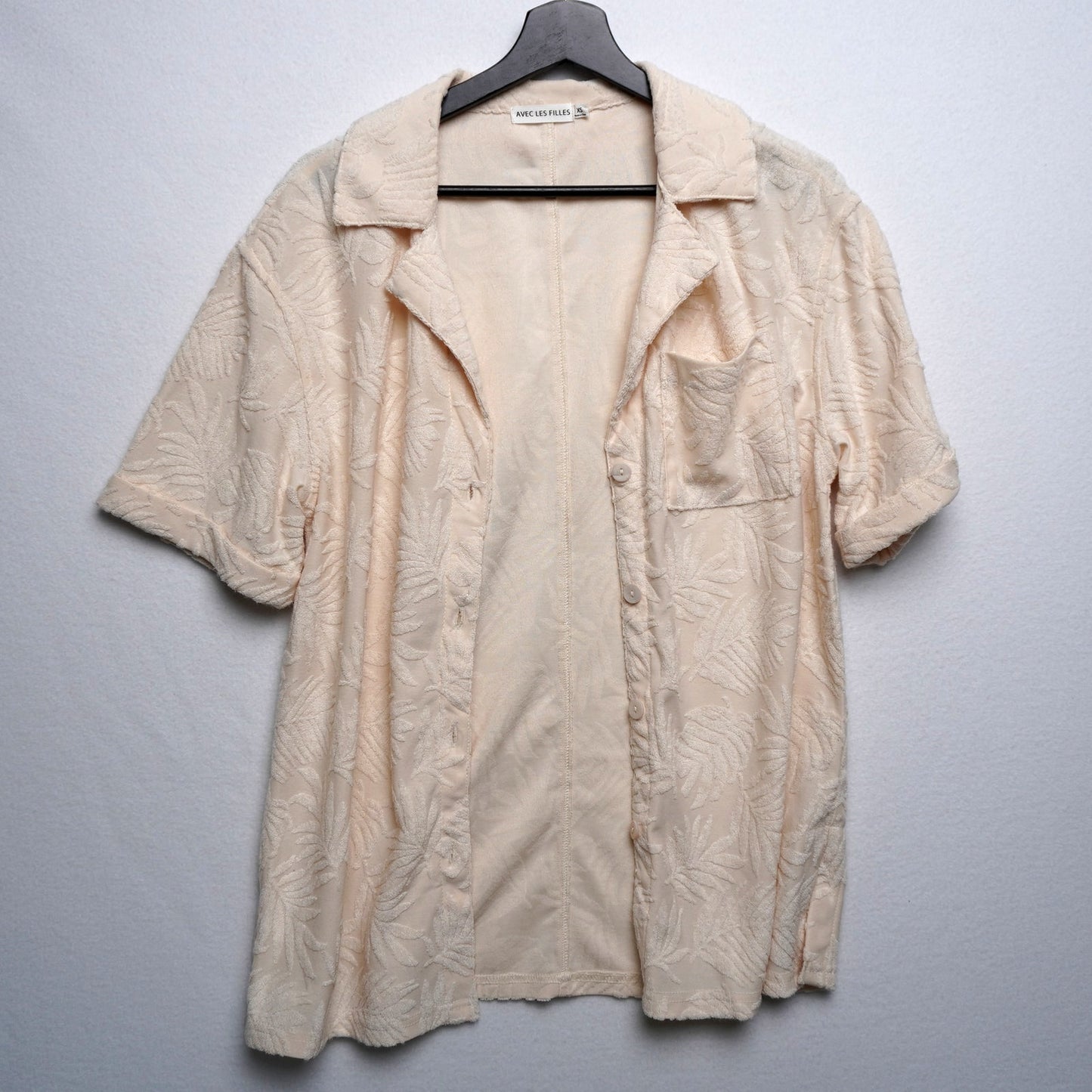 Avec Les Filles Beige Tropical Texture Shirt Size XS White Lotus Resort