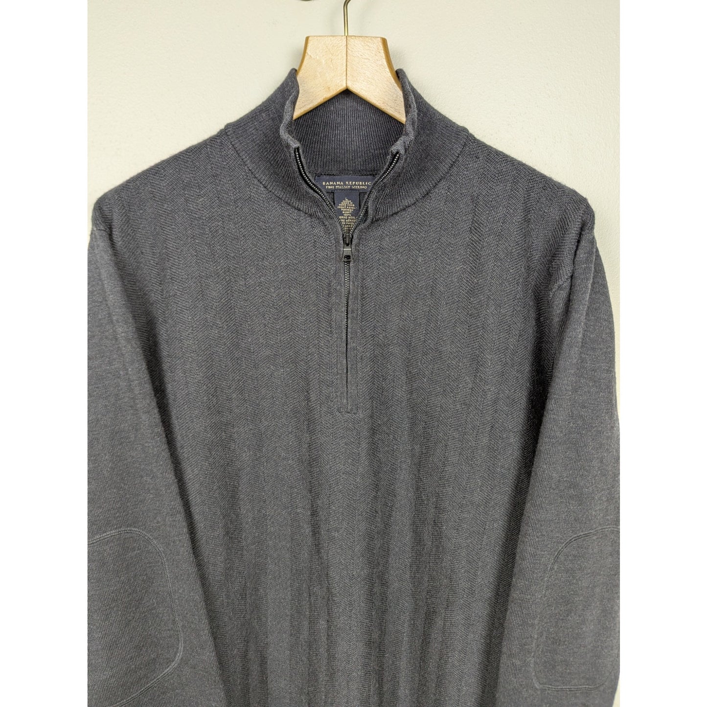 Banana Republic Gray Fine Italian Merino Wool Quarter Zip Sweater Size L