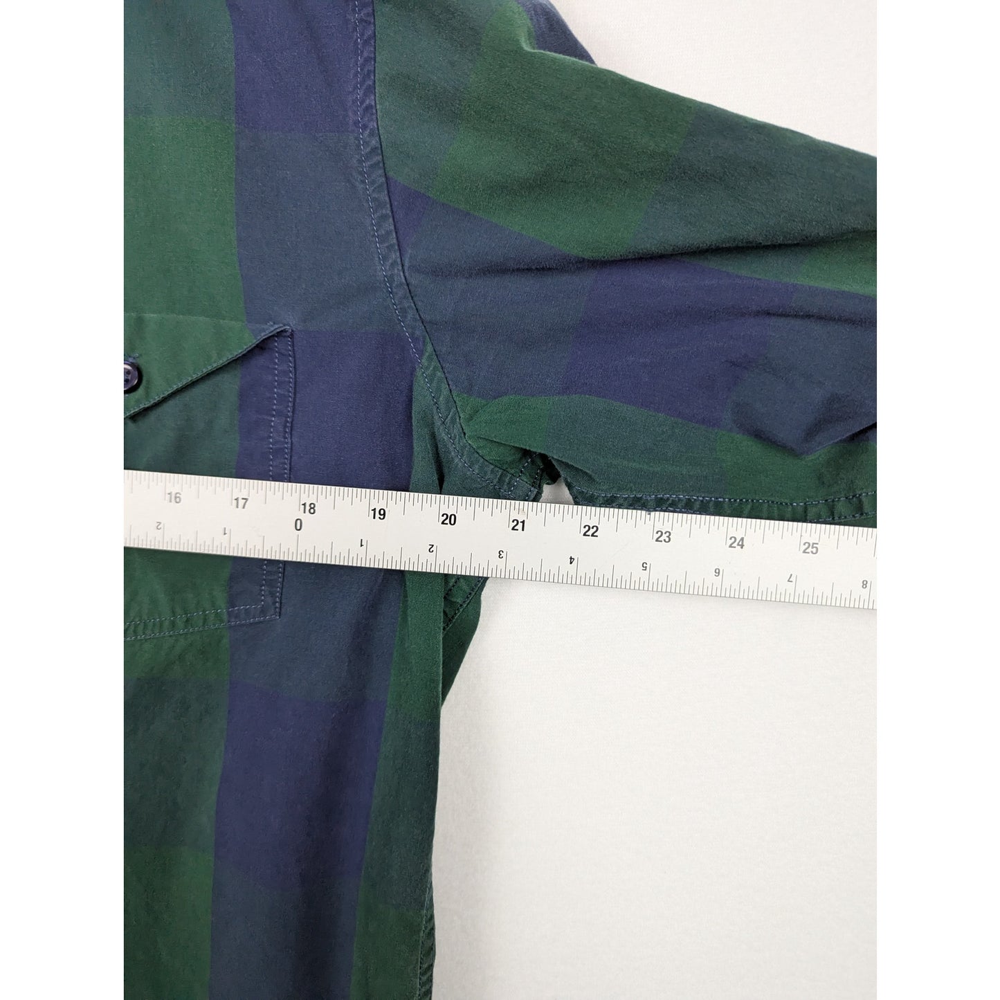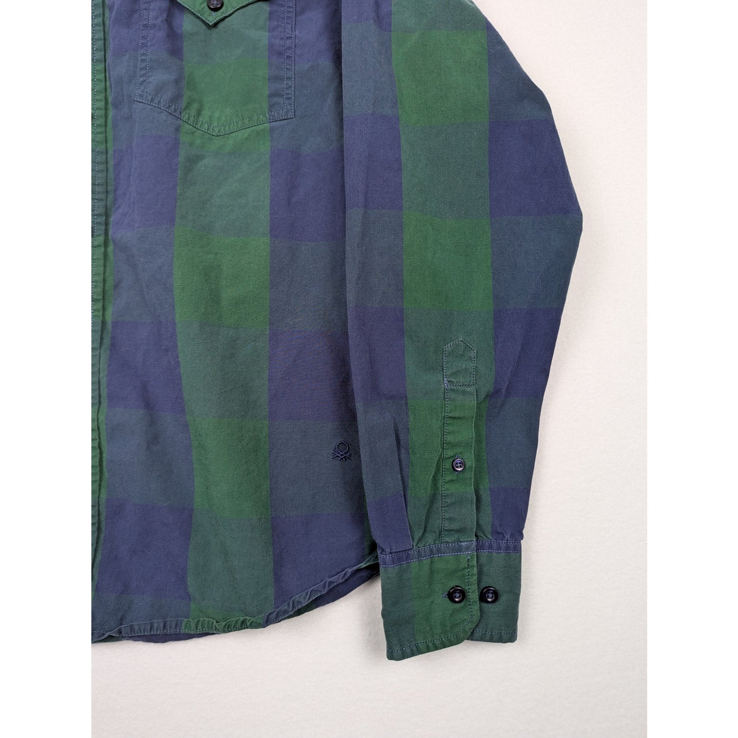 Very nice shirt by Benetton. Green and blue plaid shirt with a chest pocket.