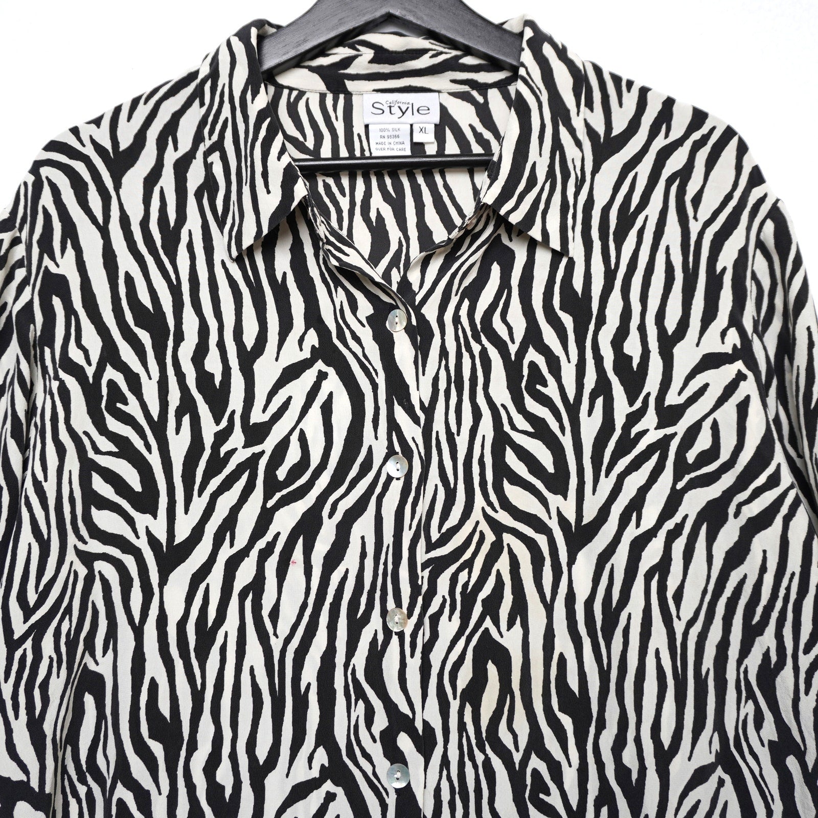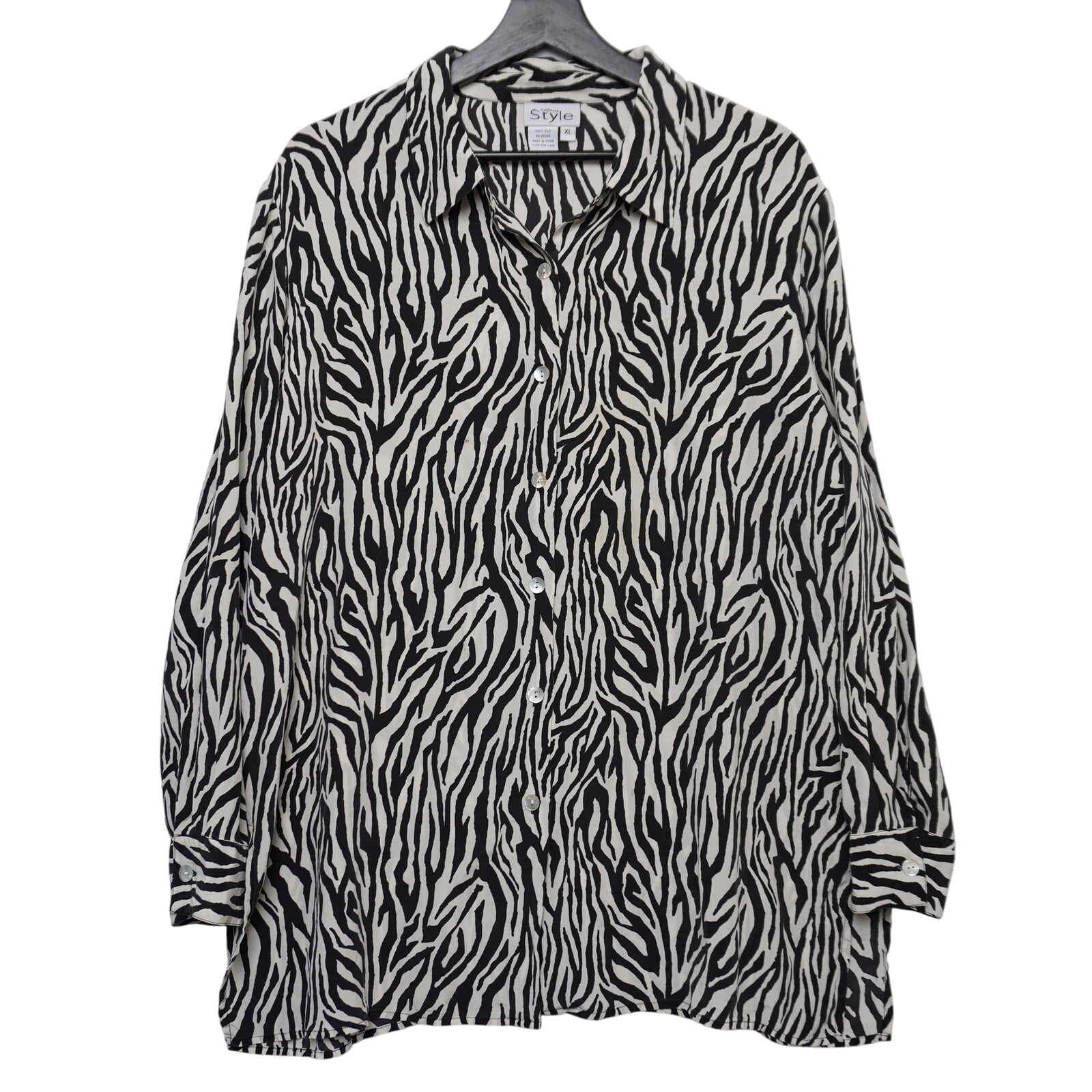 California Style Zebra Print 100% Silk Top XL