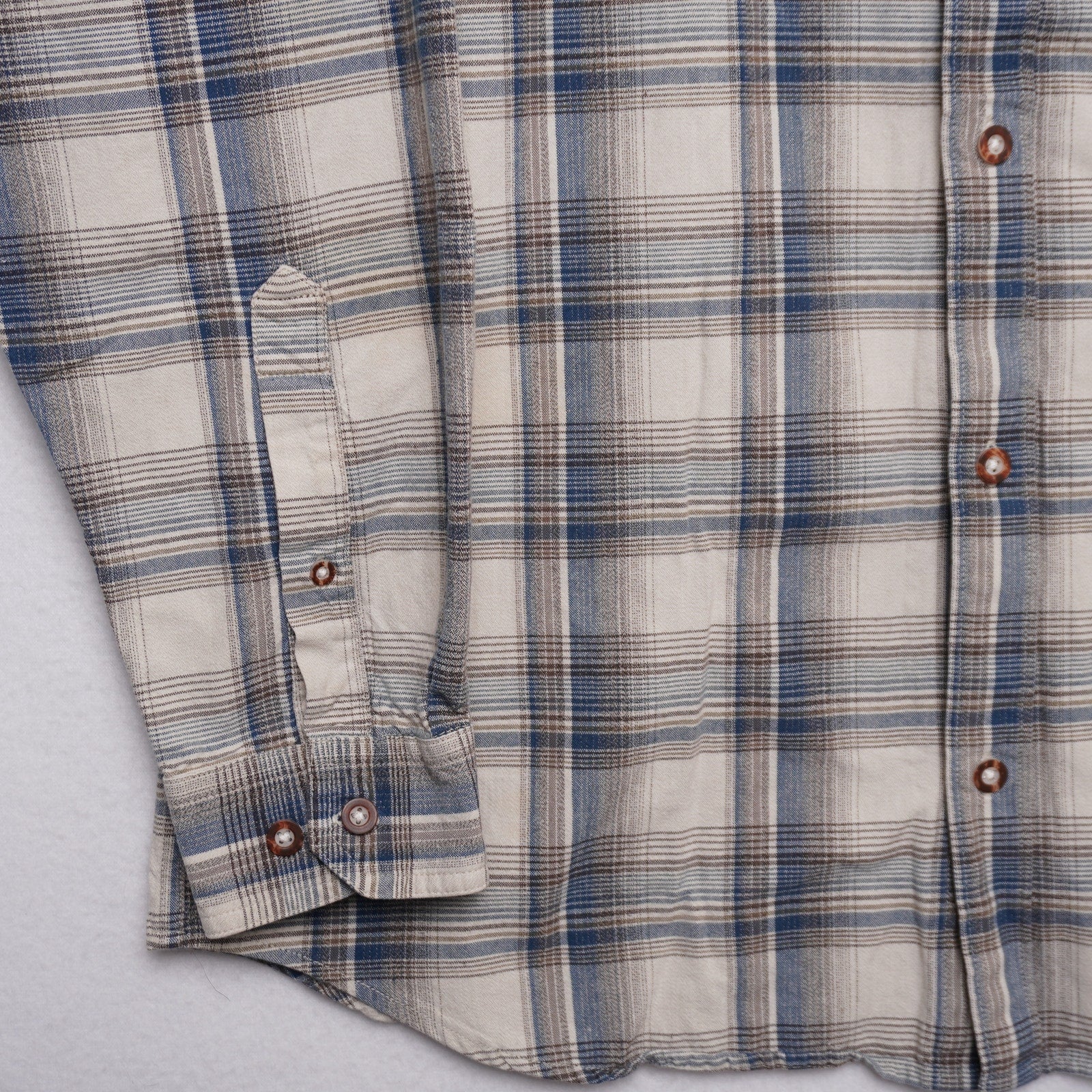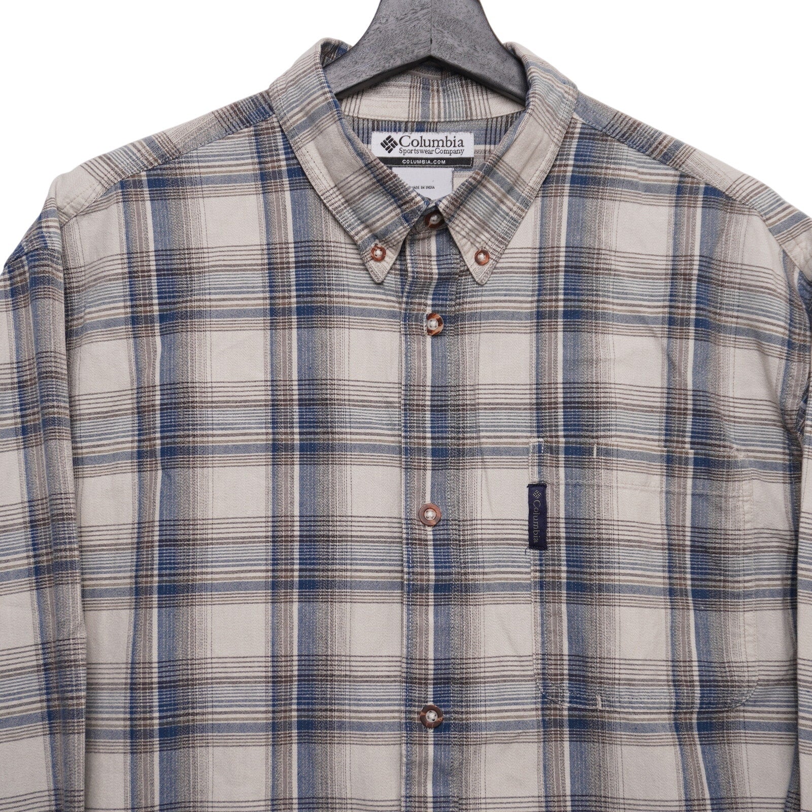 Columbia Sportswear Gray/Blue/Brown Cotton Plaid Shirt Size L