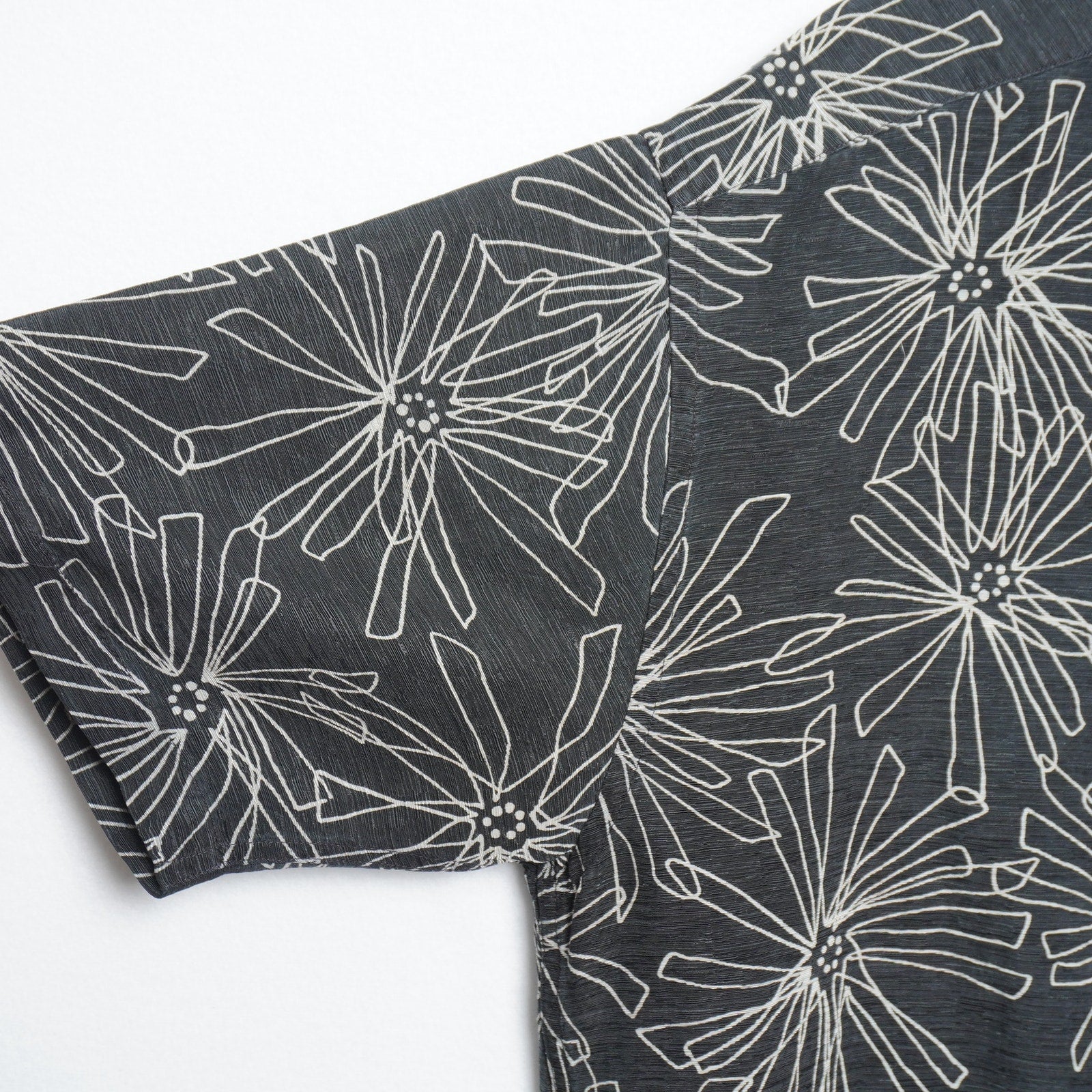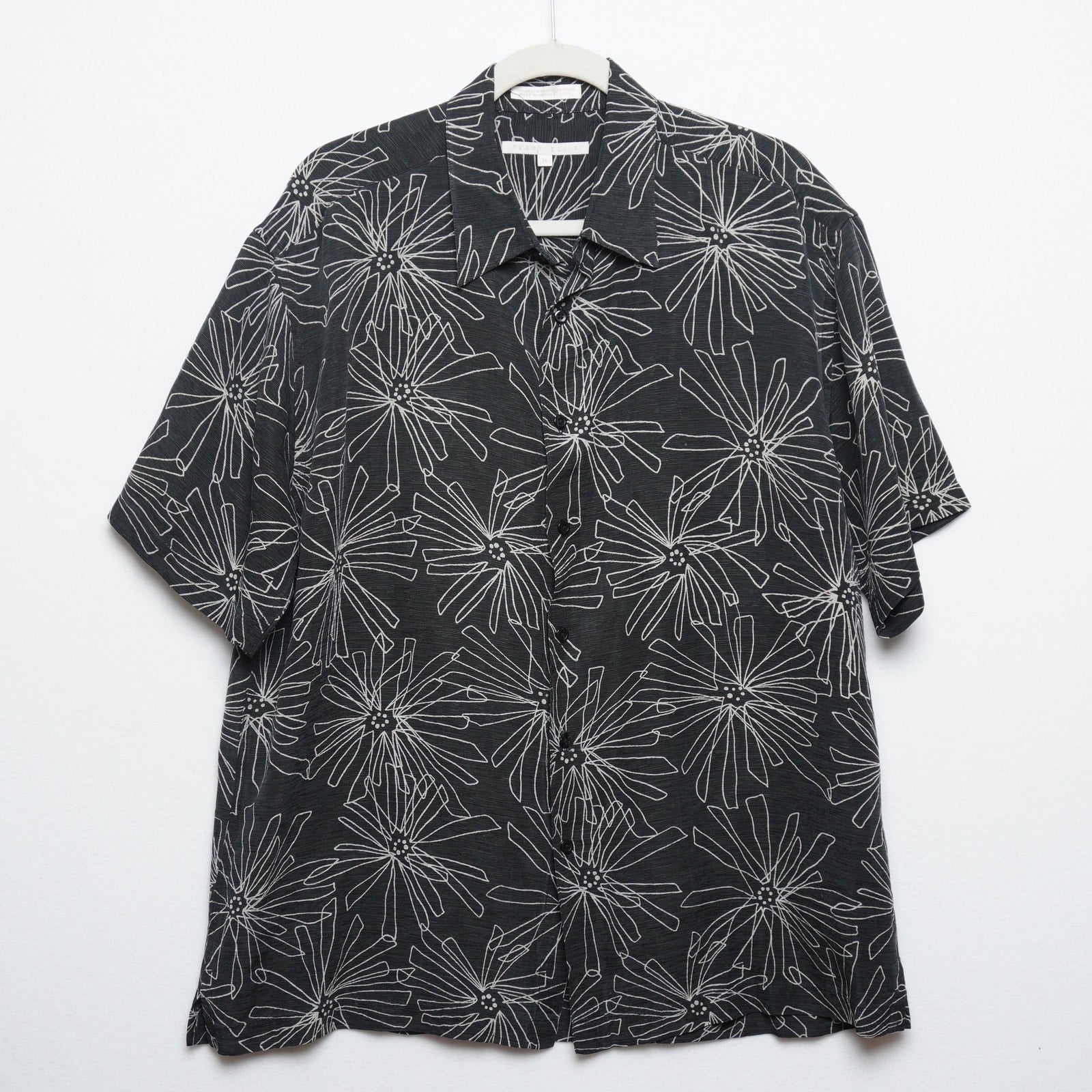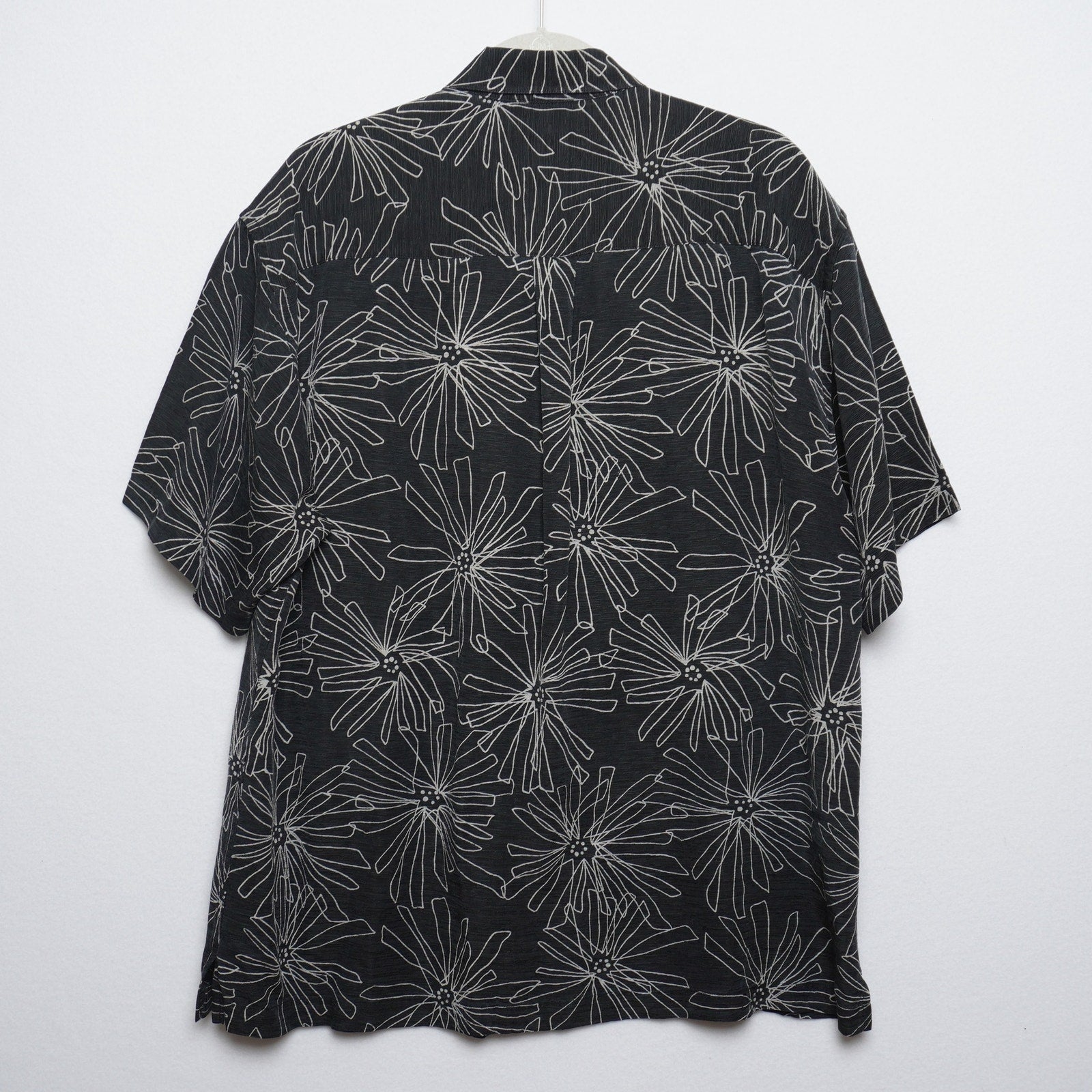 Geoffrey Beene Black Silk Linen Short Sleeve Shirt Abstract Floral Print Size XL