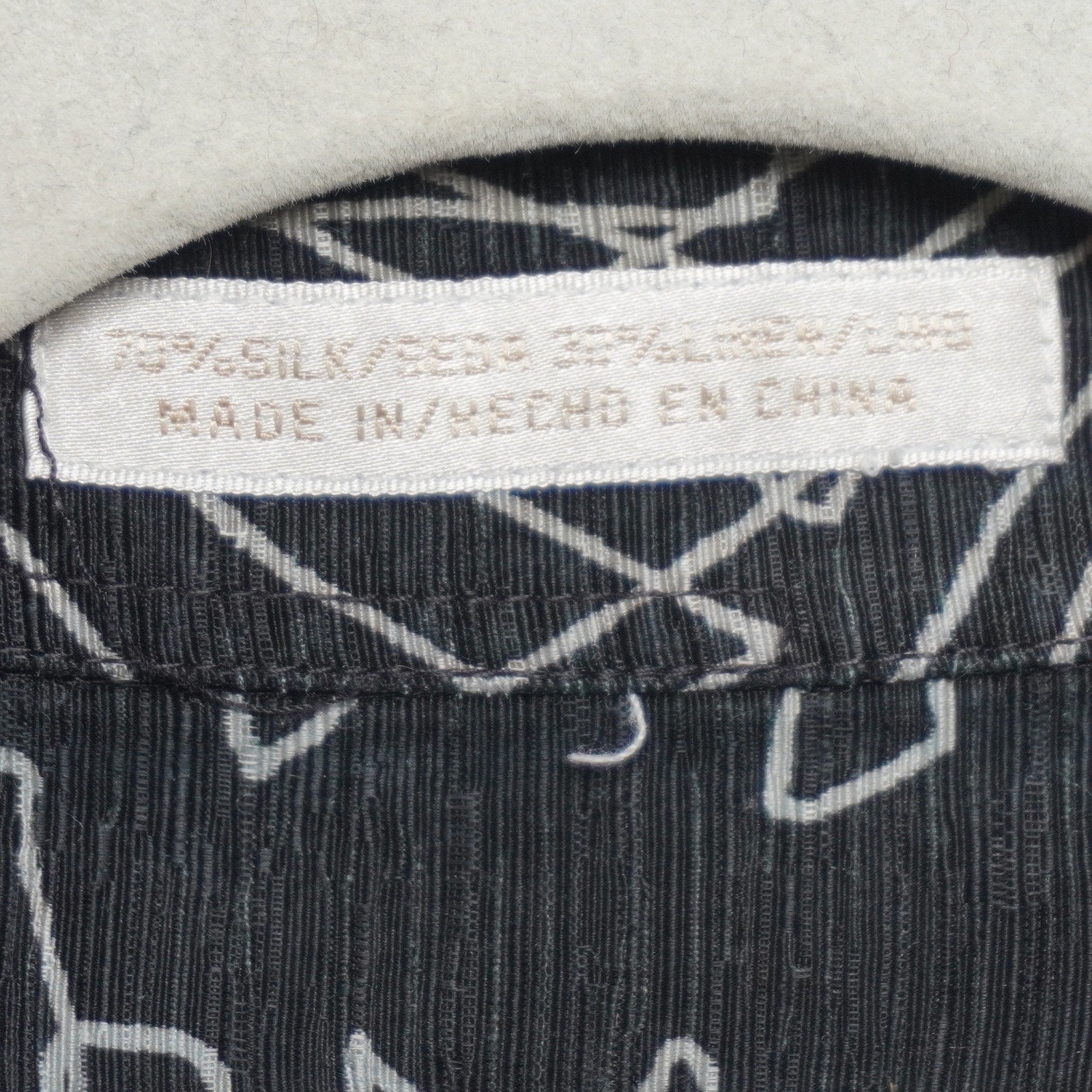 70% silk / 30% linen. Machine washable. Small mark on chest - see pictures for details.