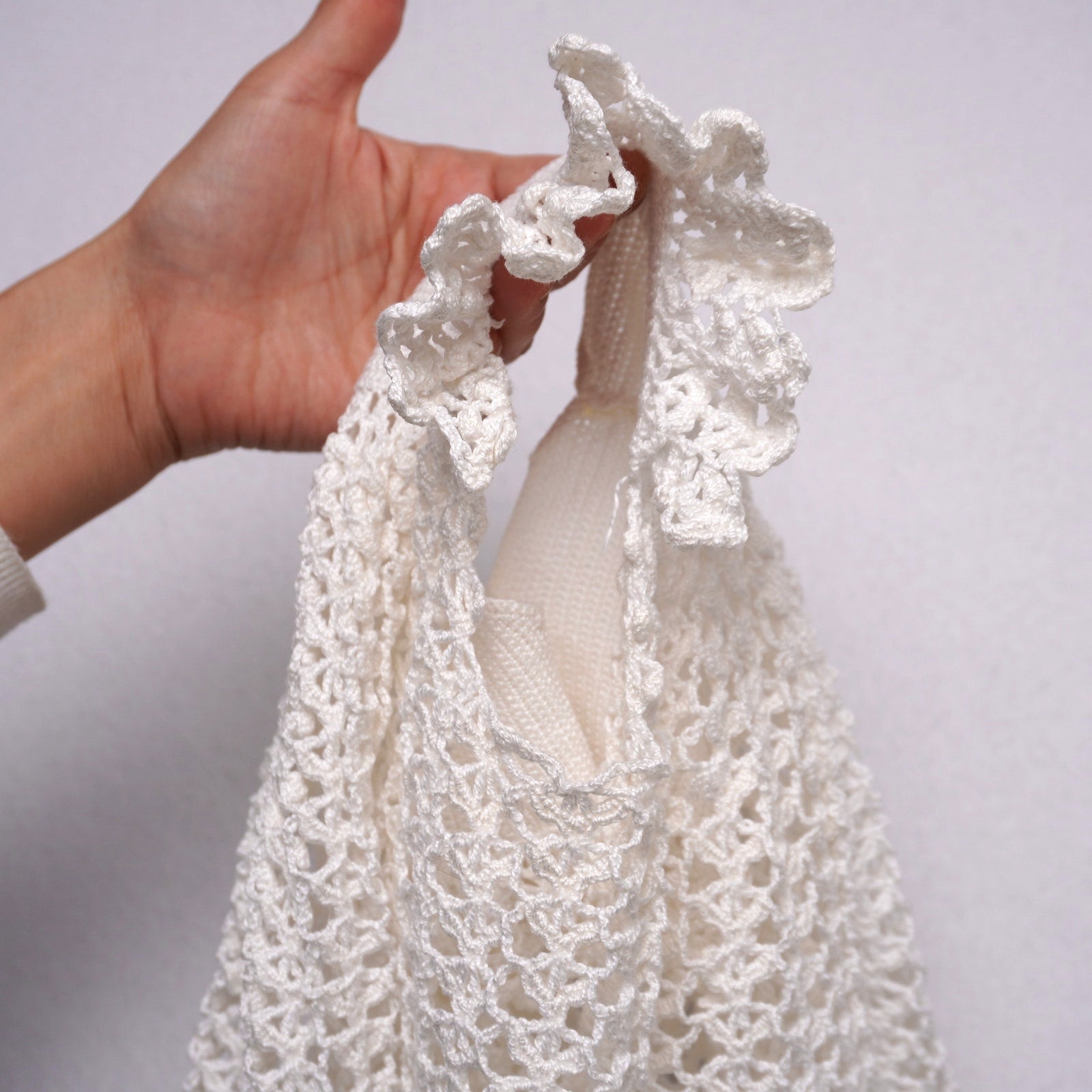Handmade Vintage Baby Dress Ivory Crochet Knit Ruffle Sleeve Infant Girl Dress