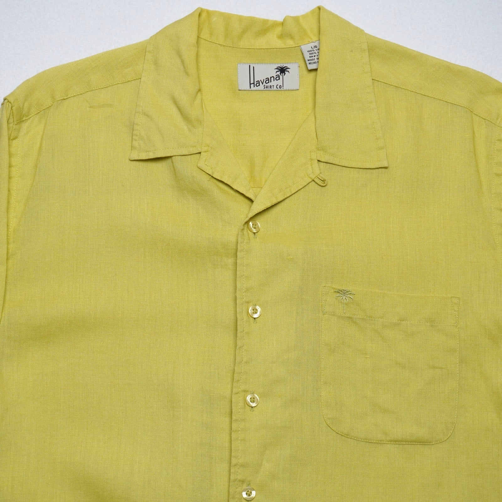 Havana Shirt Co Chartreuse 100% Linen Loop Shirt L