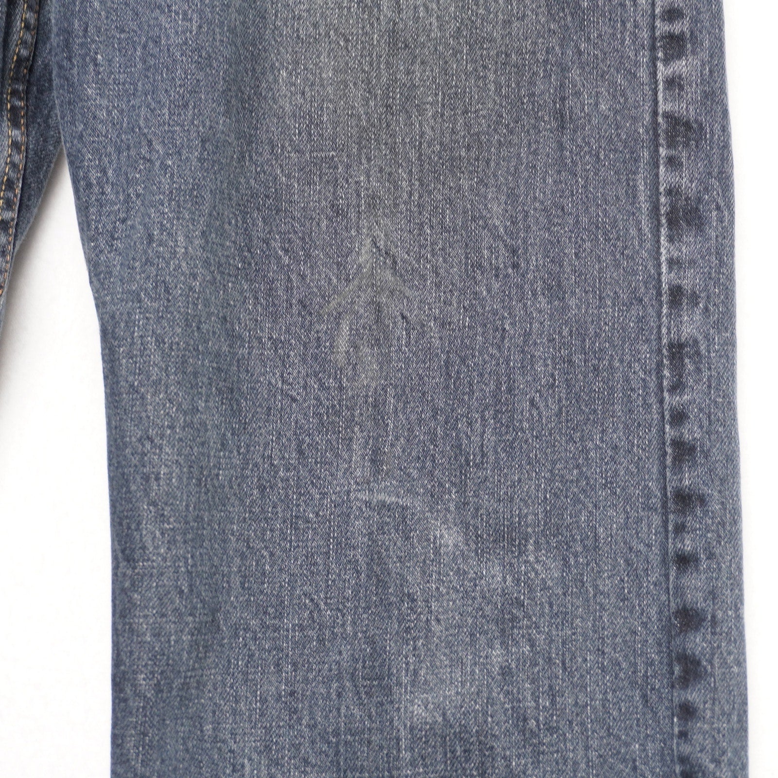 Features dark wash w/ natural, broken in fade, traditional 5-pocket styling, zip fly, and black Lee patch on the back waist