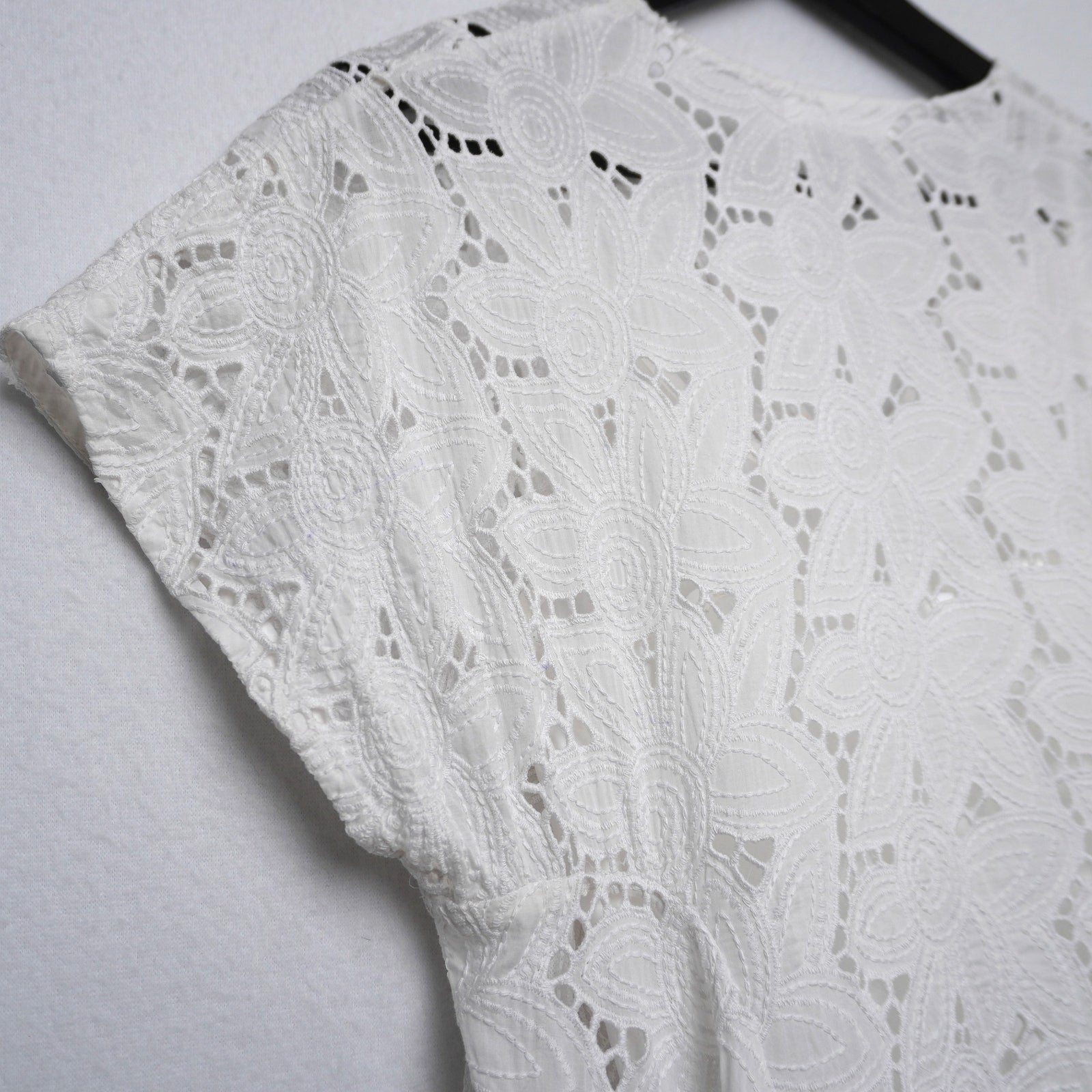 Amazing tent style dress with full skirt and movement in a charming floral eyelet fabric