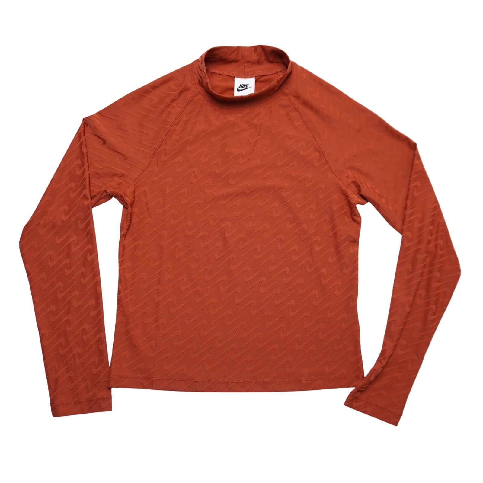 Nike Dri-FIT Orange Mock Neck Long Sleeve Top Women's Small – Wave Pattern – NWT