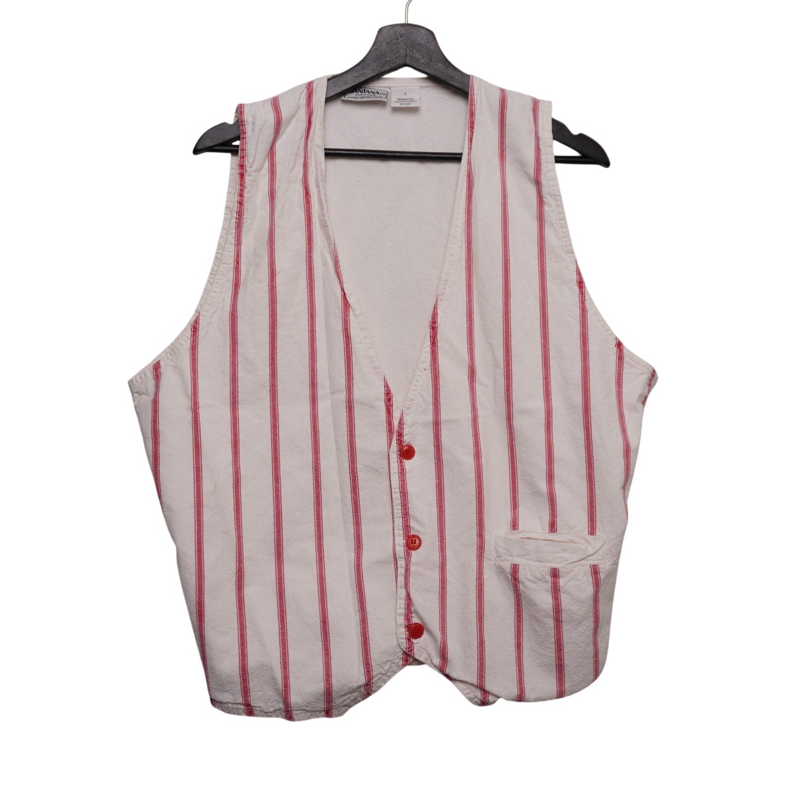Santana Ltd. Red White Striped Vest 100% Cotton Adjustable Back Men's Large