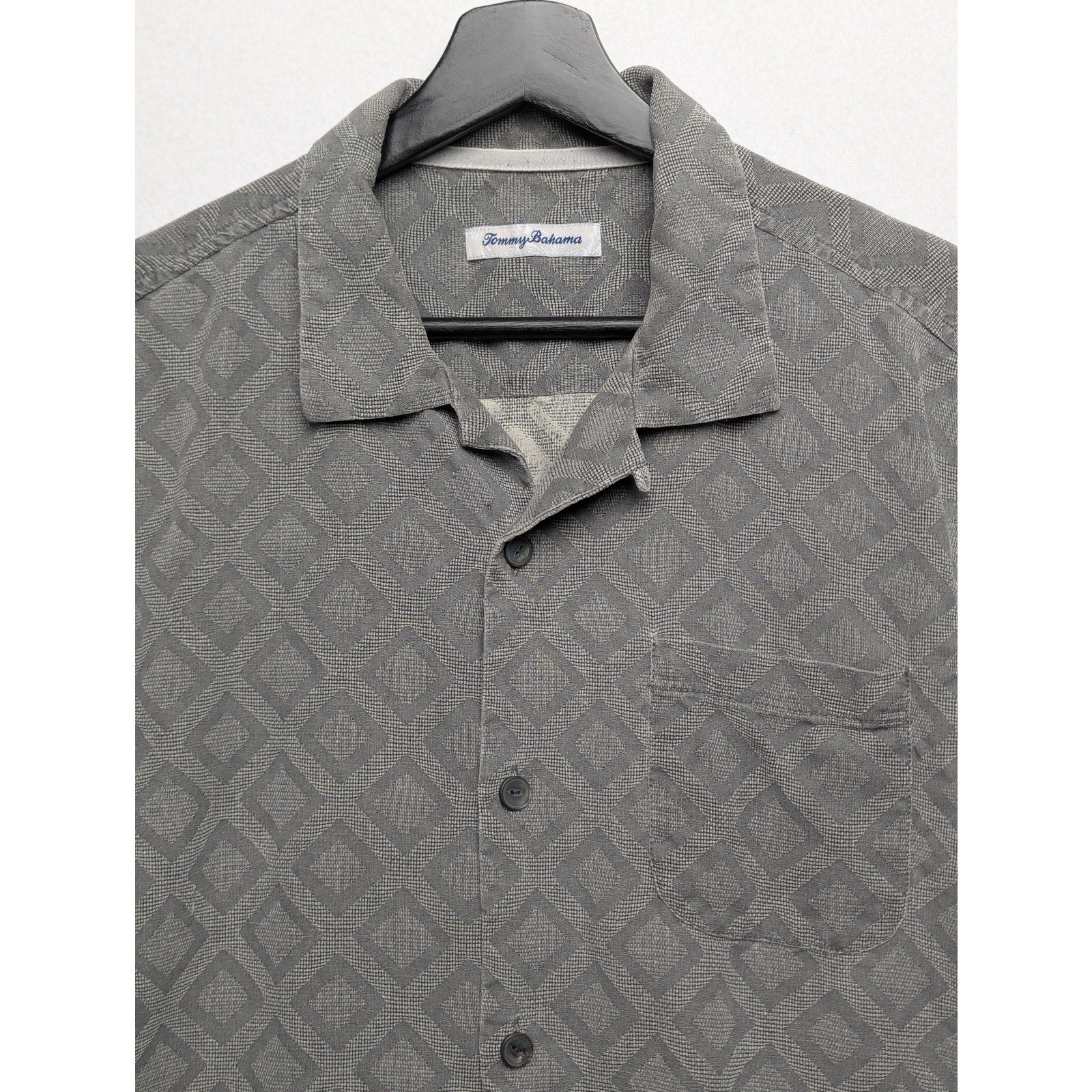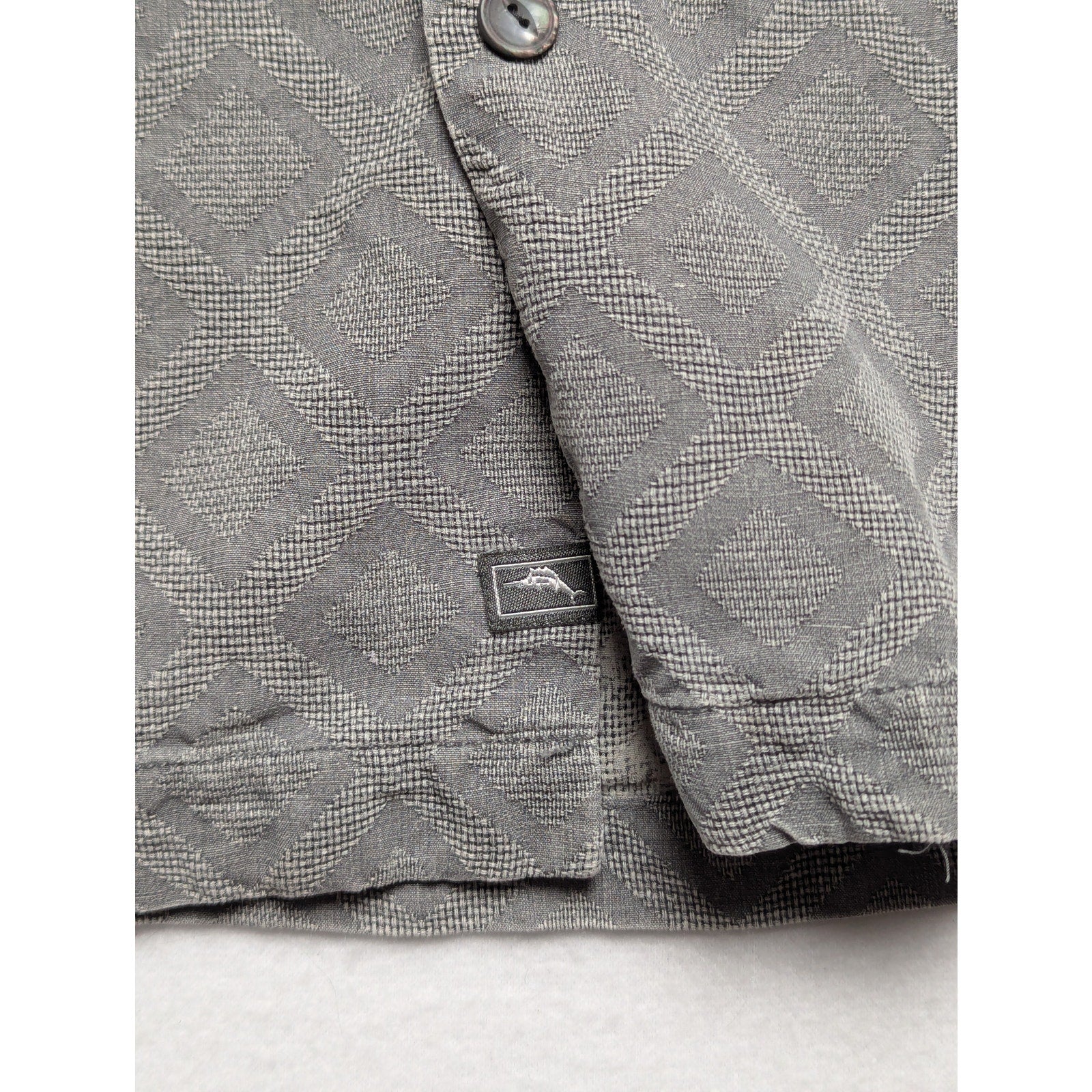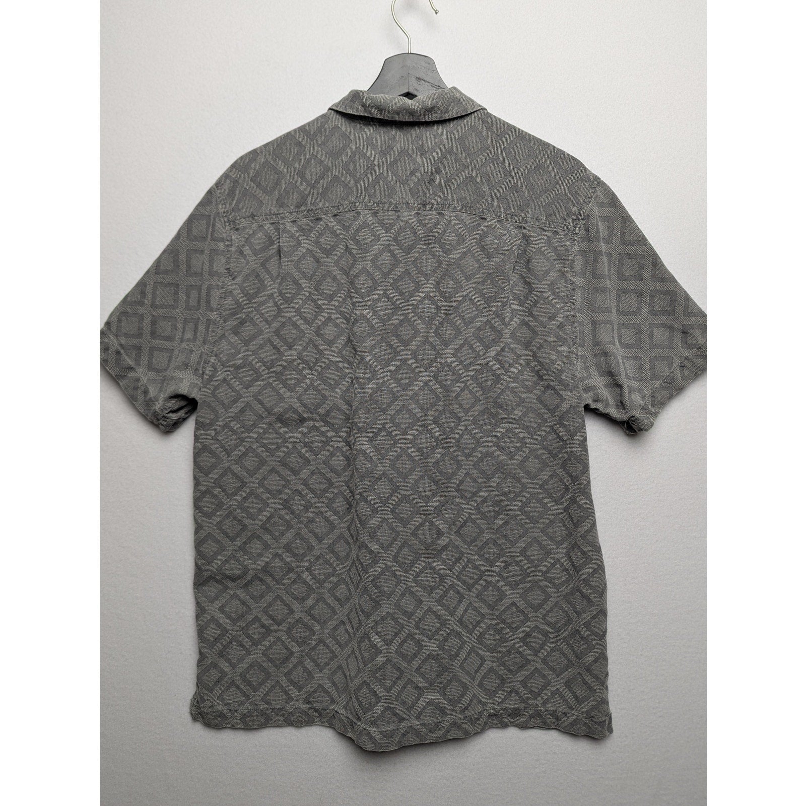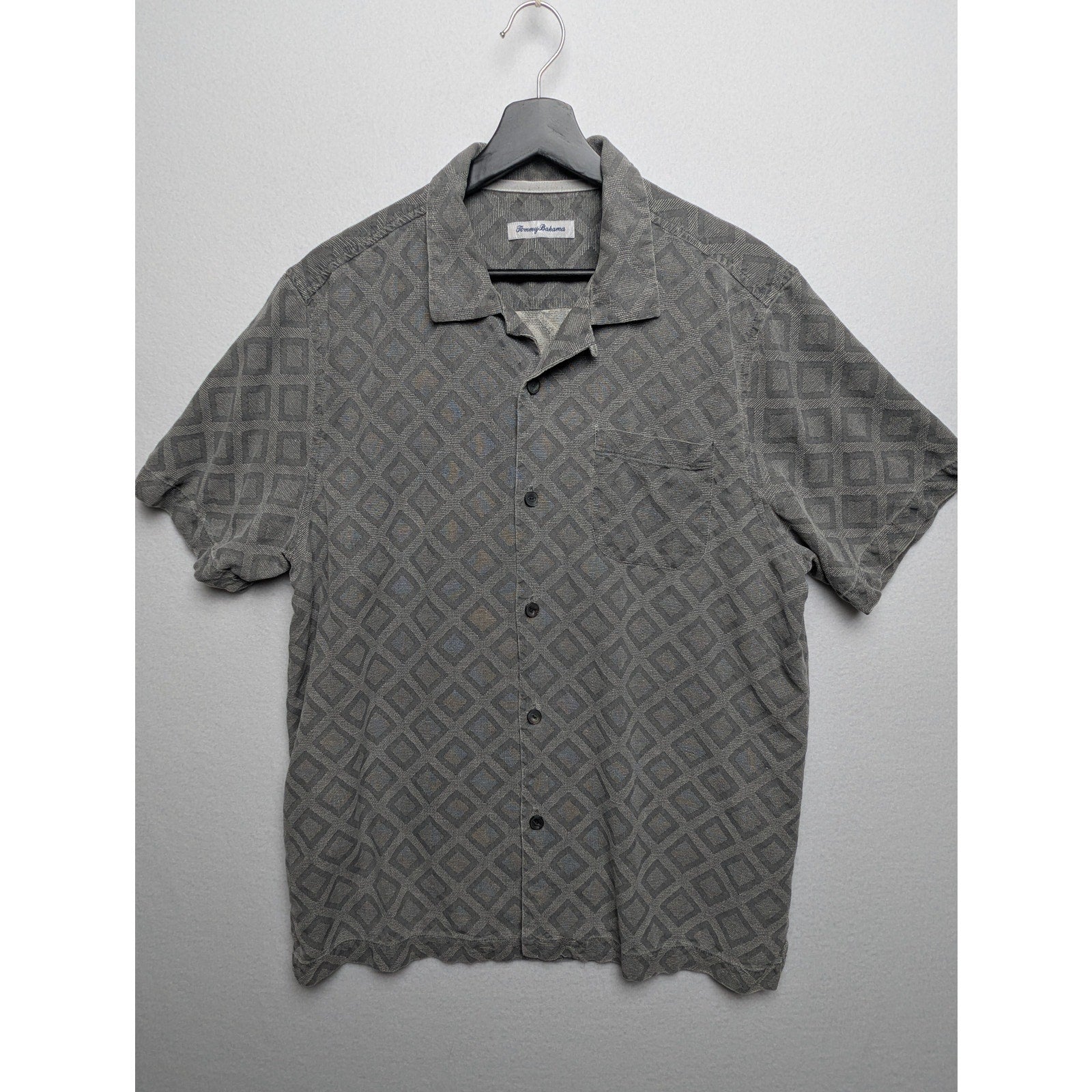 Tommy Bahama 100% Silk Camp Shirt Men’s L – Gray Diamond Pattern Button-Up