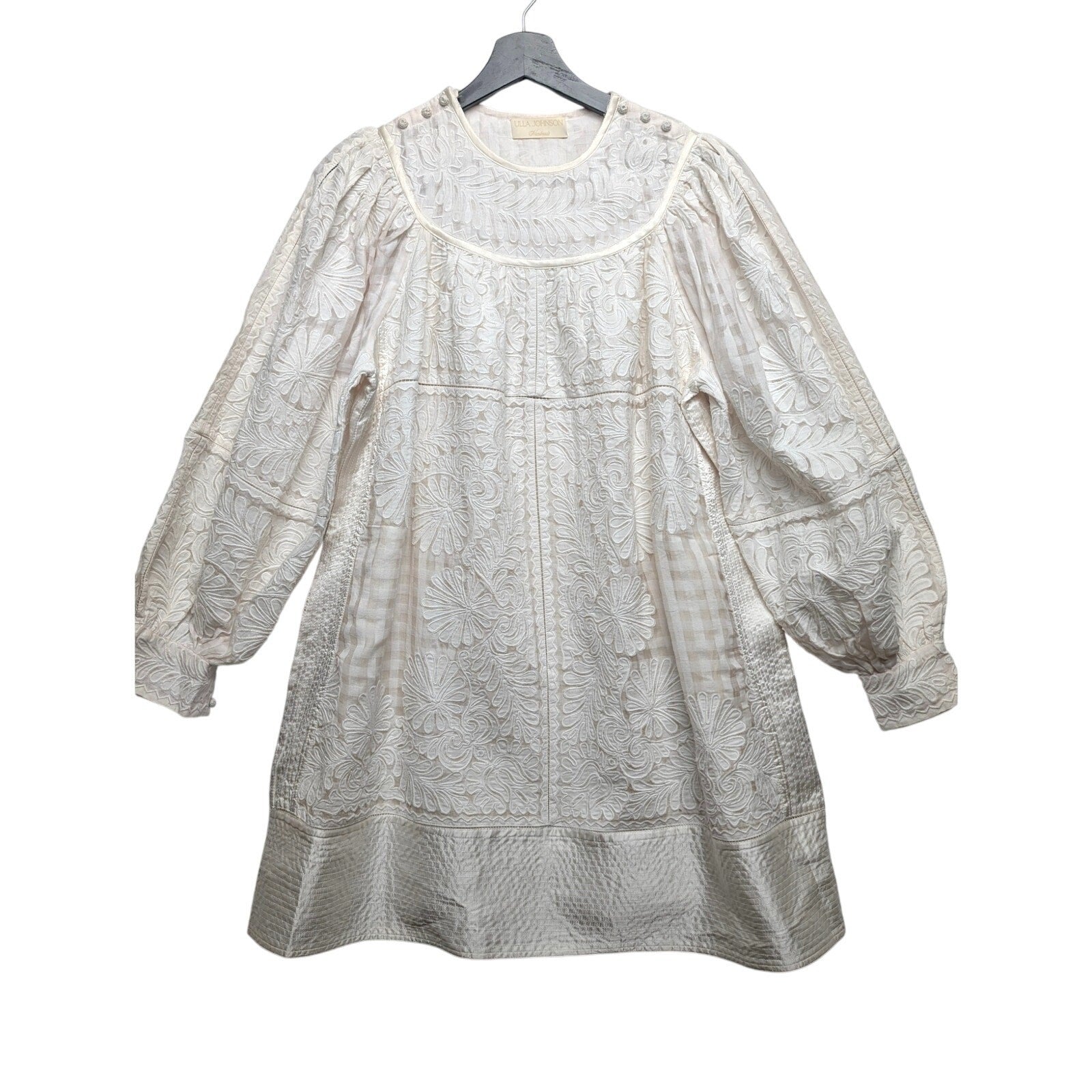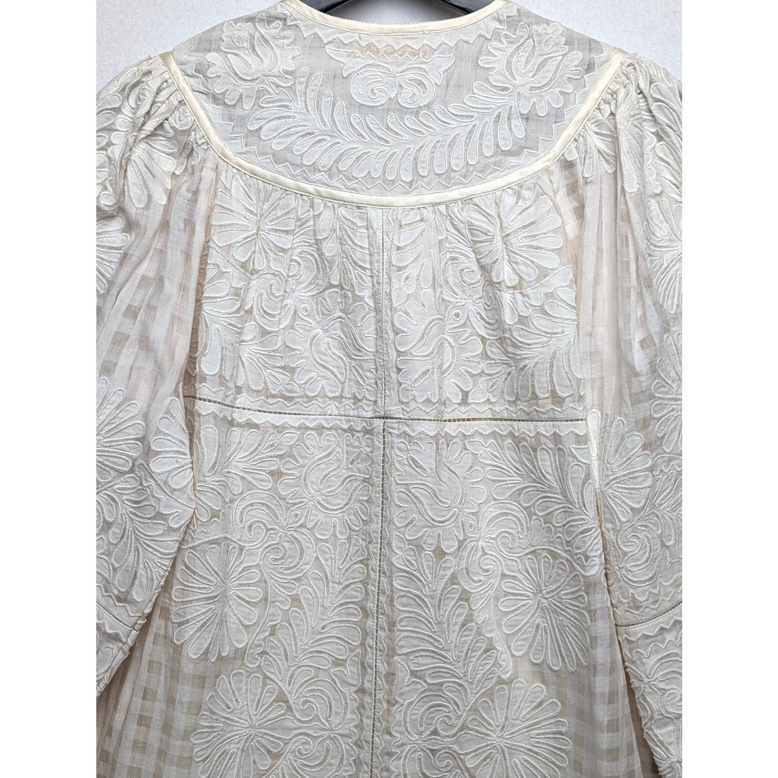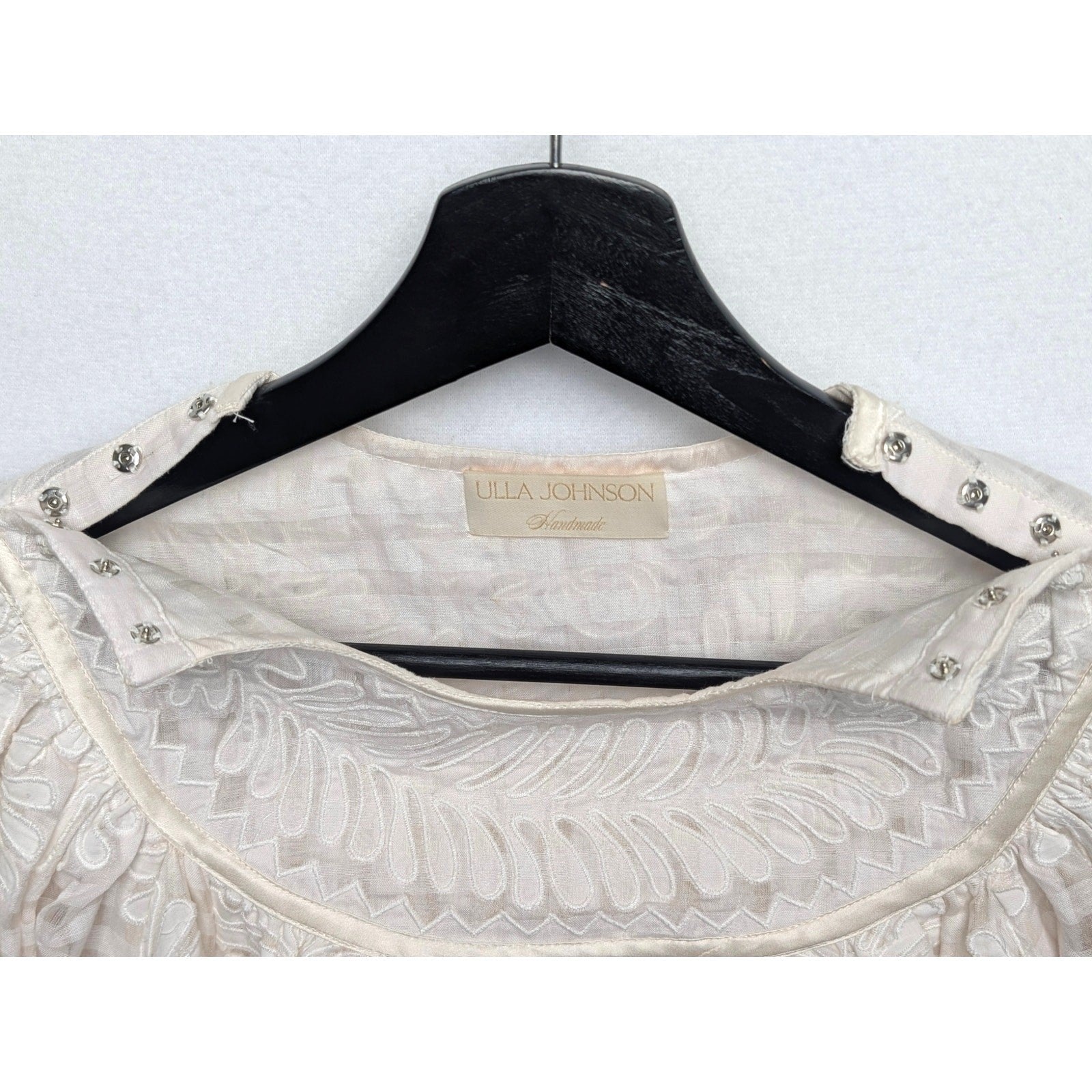 Ulla Johnson Bianca Hand Embroidered Cream Balloon Sleeve Dress 0