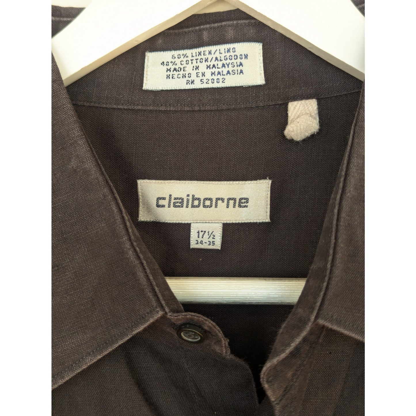 Vintage shirt by Claiborne. Linen/Cotton blend. Black. Size 17.5 33/34.