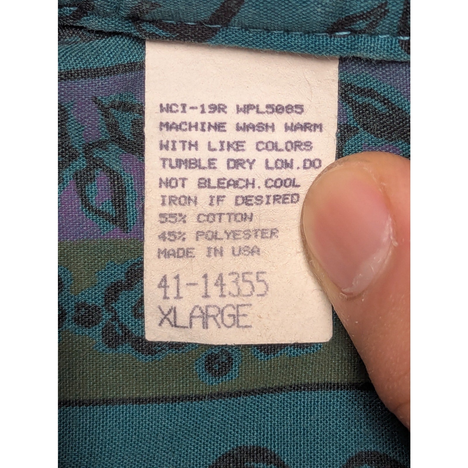 Vintage Oakton Limited Green Floral Long Sleeve Casual Shirt XL
