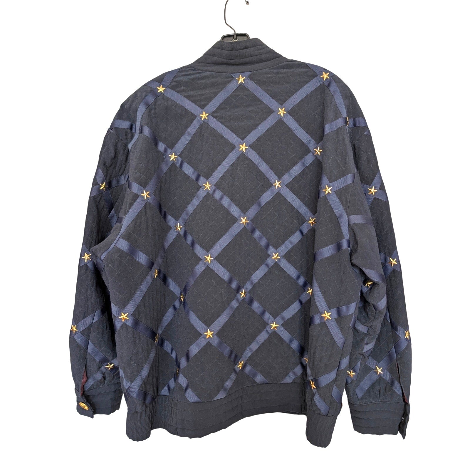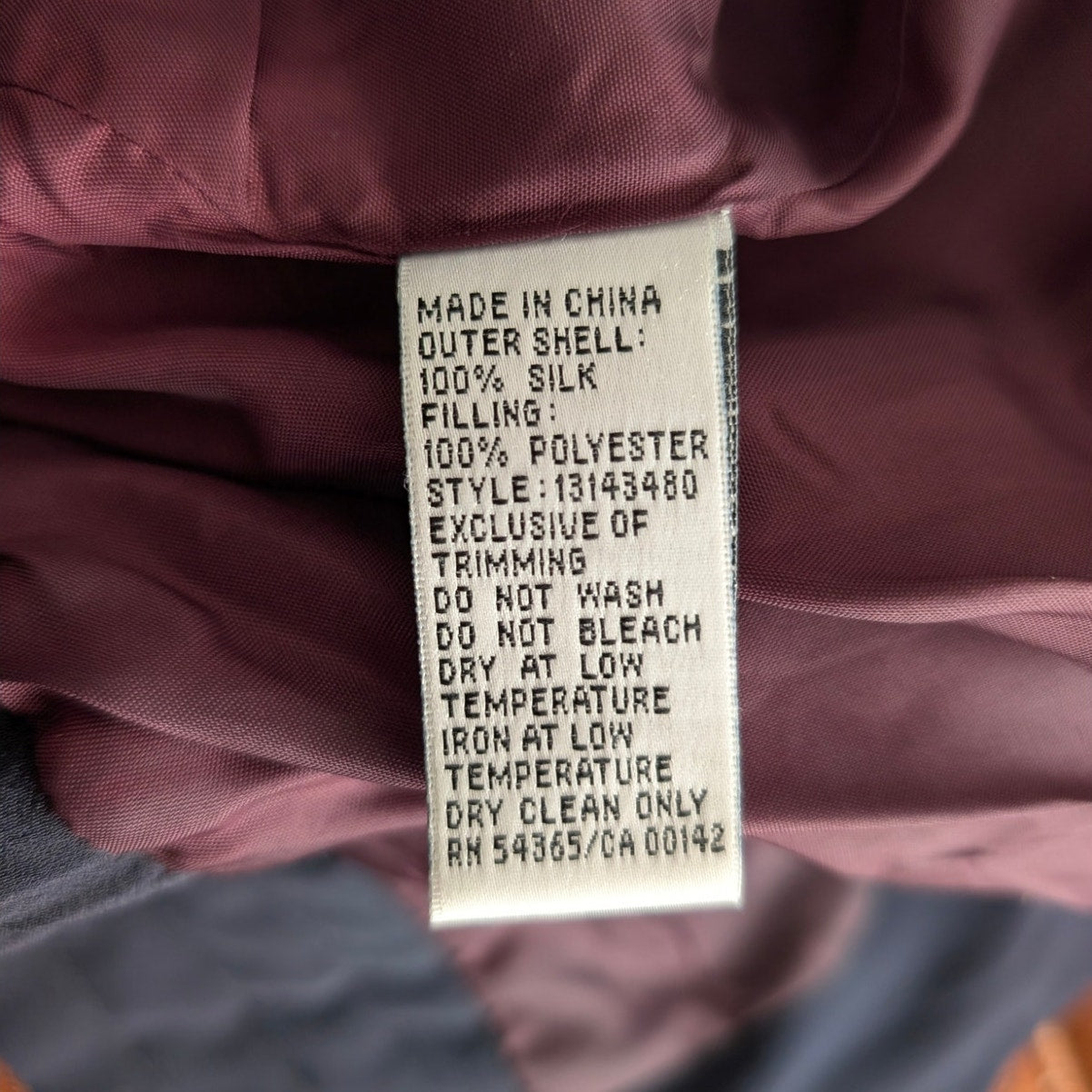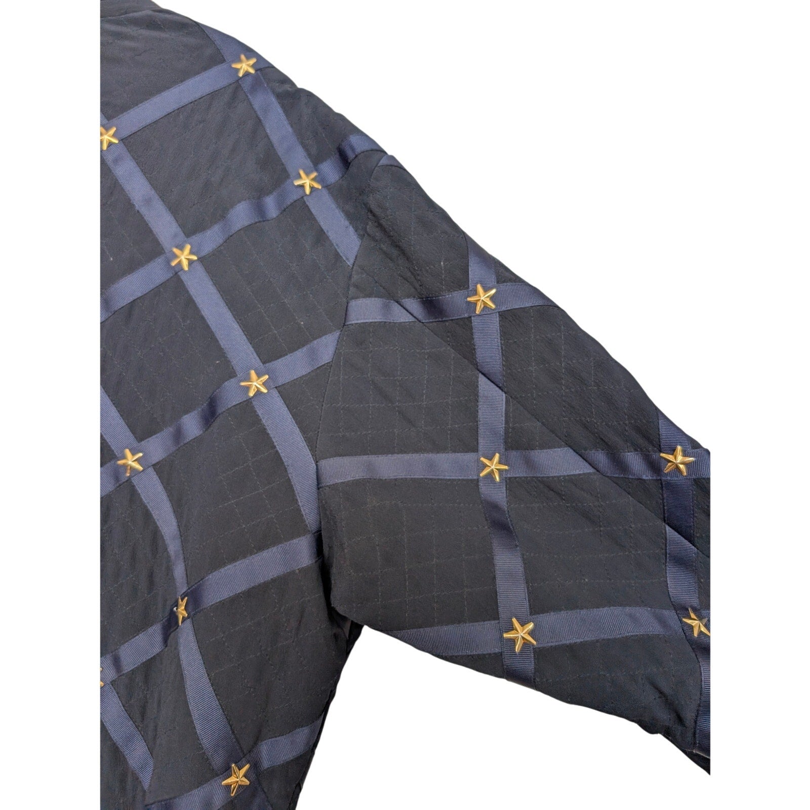 Vintage Peter Nygard Navy Silk Bomber with Ribbon and Gold Accents