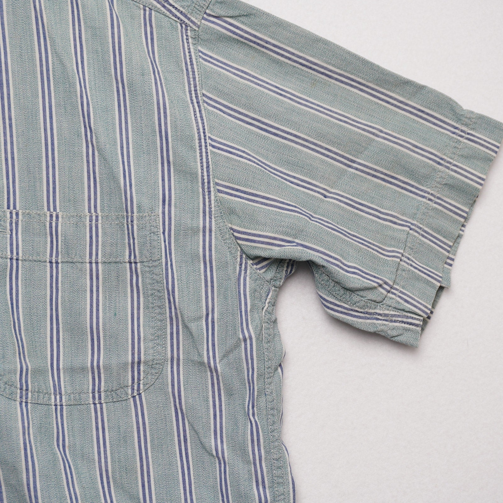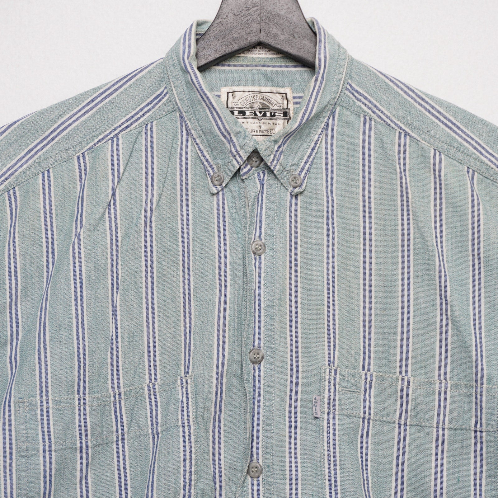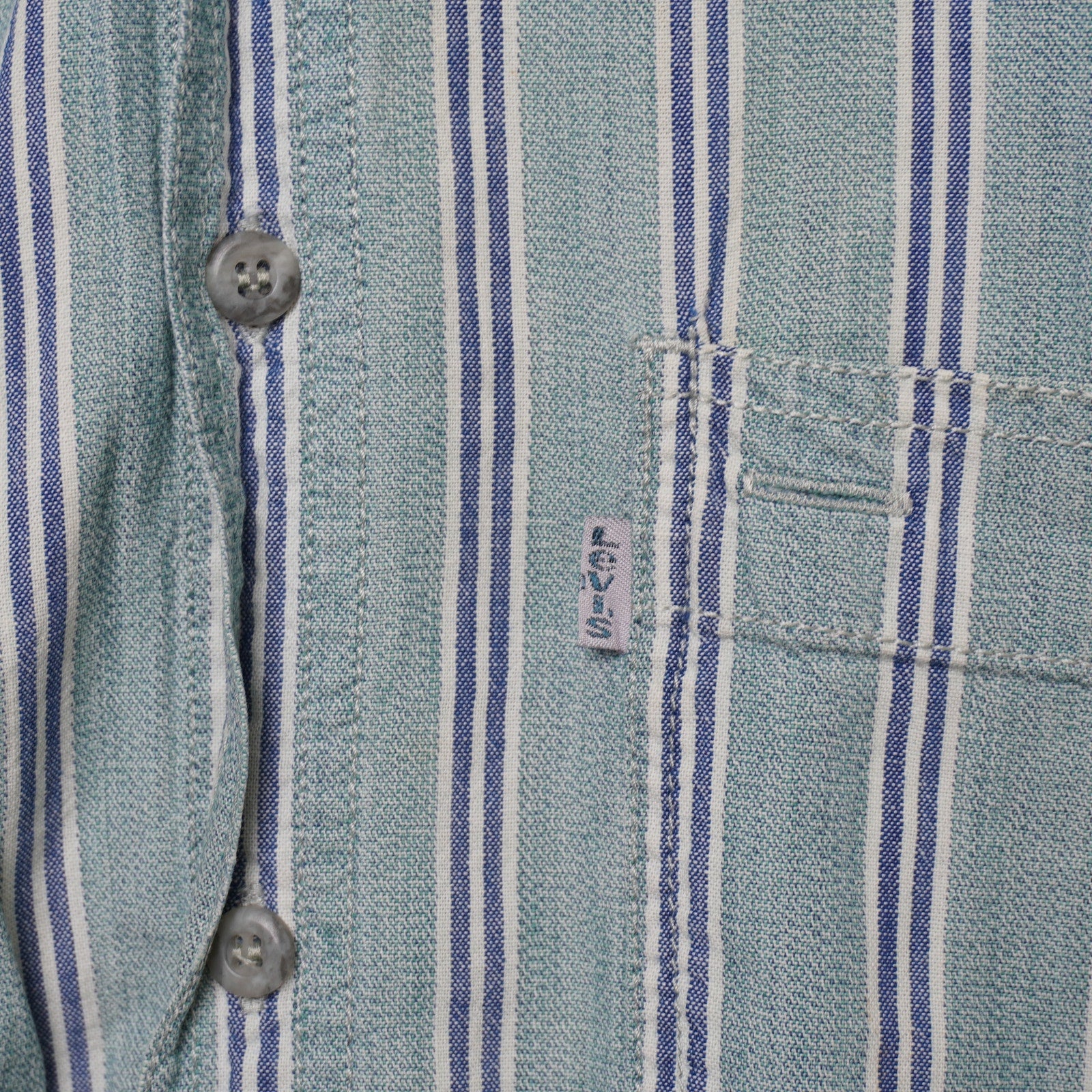 VTG Levi’s Striped Short Sleeve Button Up Shirt Green Blue Cotton Men's Medium